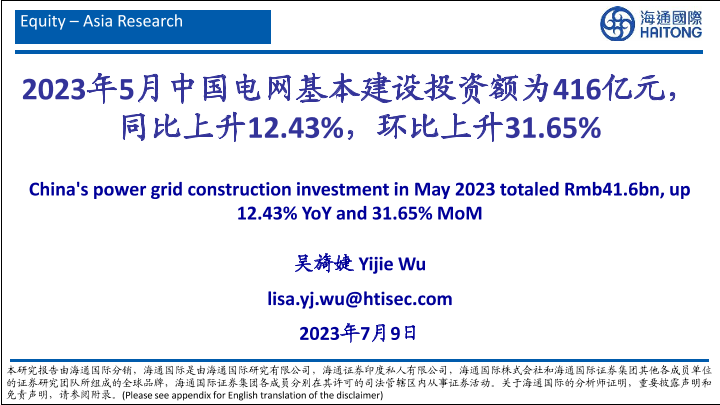 【海通国际】【20230709】有色金属行业:2023年5月中国电网基本建设投资额为416亿元,同比上升12.43%,环比上升31.65%-28页