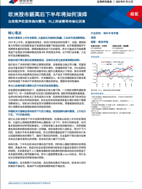 【国信证券】【20230713】欧洲股市新高后下半年将如何演绎:加息尾声欧股将偏向震荡,向上突破需等待催化因素-29页