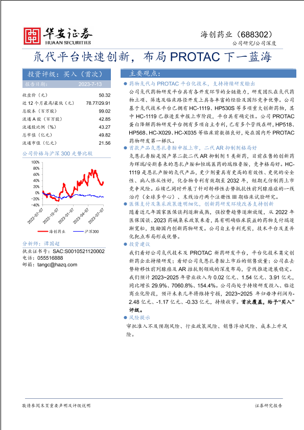 【华安证券】【20230713】海创药业(688302)氘代平台快速创新,布局PROTAC下一蓝海-35页