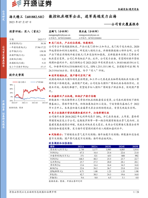 【开源证券】【20230707】海天精工(601882)公司首次覆盖报告:数控机床领军企业,进军高端发力出海-28页