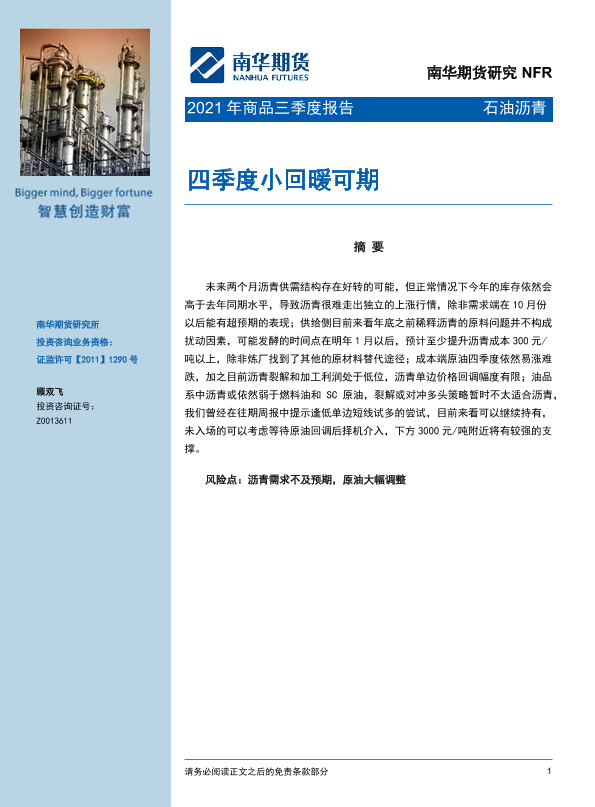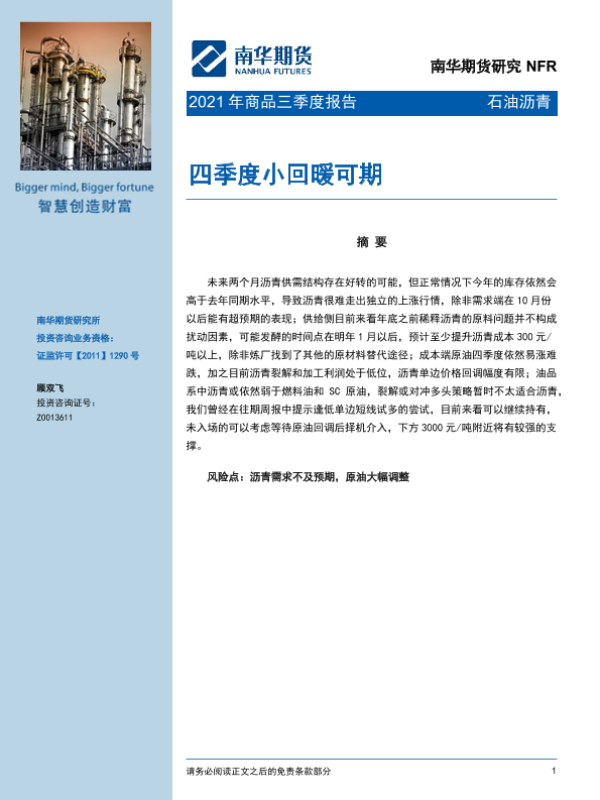 【南华期货】【20210928】石油沥青2021年商品三季度报告:四季度小回暖可期-20页