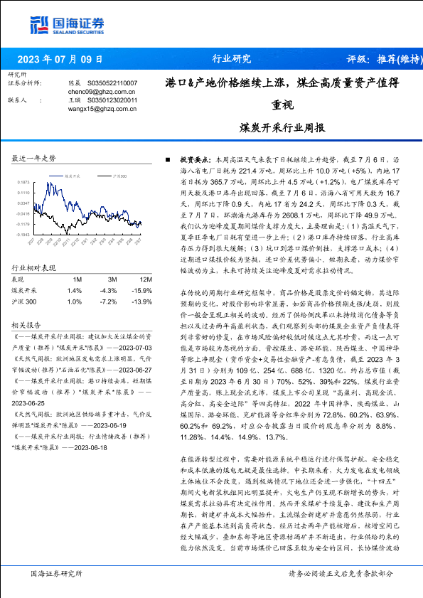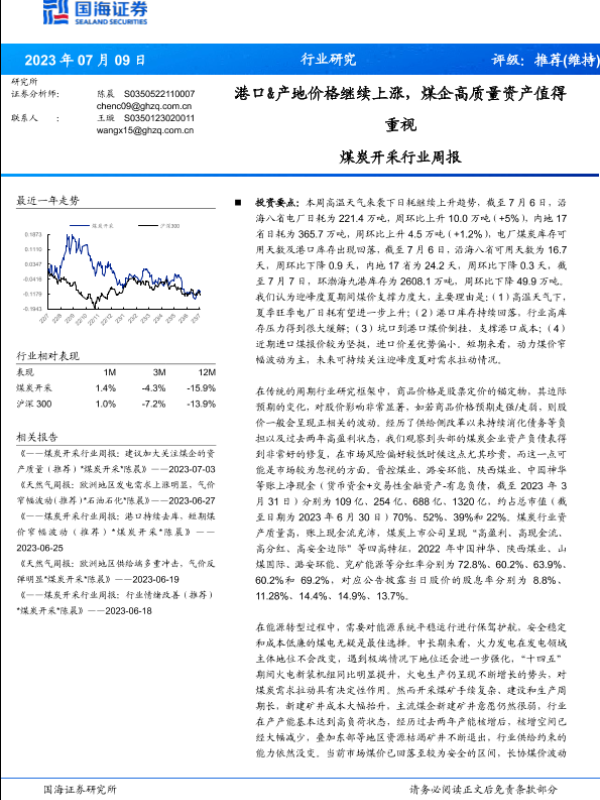 【国海证券】【20230709】煤炭开采行业周报:港口&产地价格继续上涨,煤企高质量资产值得重视-22页