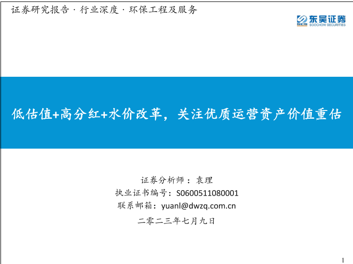 【东吴证券】【20230709】环保工程及服务行业深度报告:低估值+高分红+水价改革,关注优质运营资产价值重估-34页