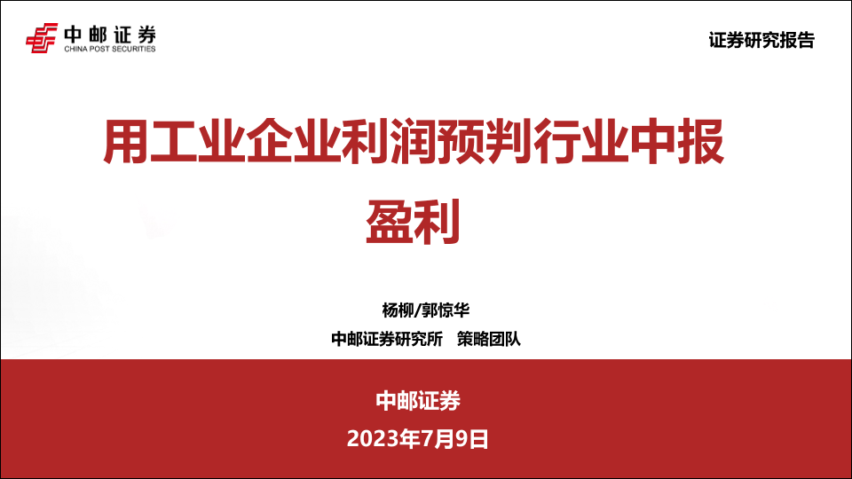 【中邮证券】【20230709】用工业企业利润预判行业中报盈利-24页