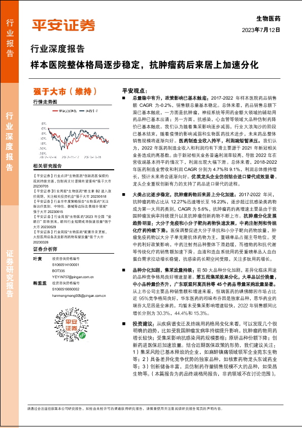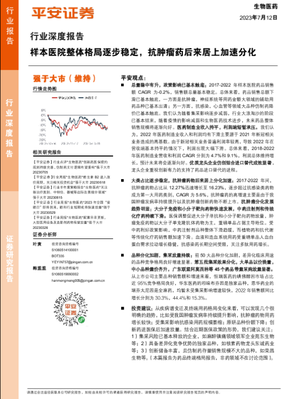 【平安证券】【20230712】生物医药行业深度报告-样本医院整体格局逐步稳定-抗肿瘤药后来居上加速分化-24页