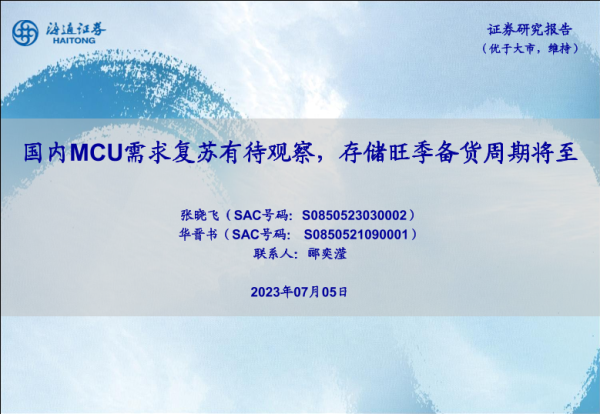 【海通证券】【20230705】国内MCU需求复苏有待观察,存储旺季备货周期将至-15页