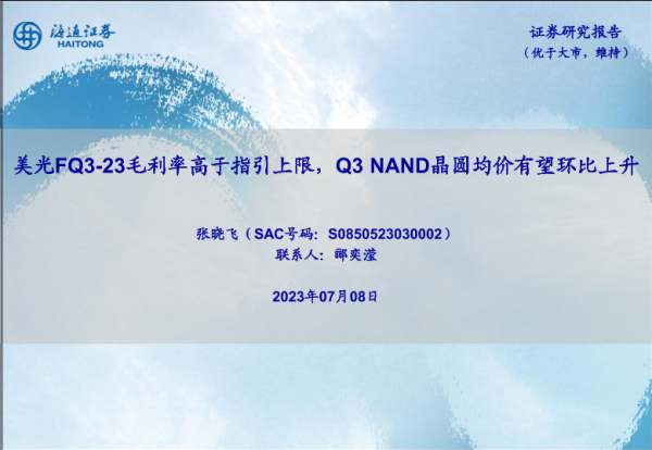 【海通证券】【20230708】电子行业:美光FQ3_23毛利率高于指引上限,Q3 NAND晶圆均价有望环比上升-15页