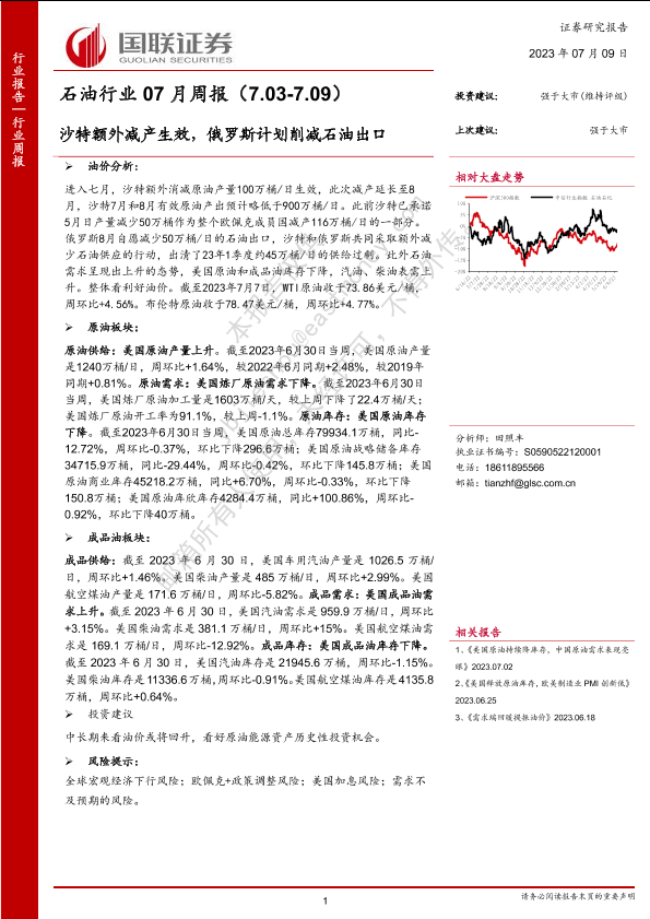 【国联证券】【20230709】石油行业07月周报:沙特额外减产生效,俄罗斯计划削减石油出口-21页