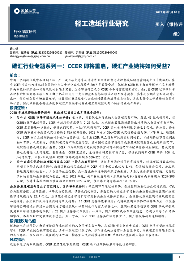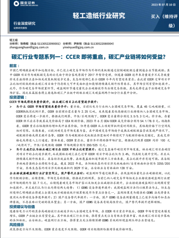 【国金证券】【20230710】碳汇行业专题系列一:CCER即将重启,碳汇产业链将如何受益?-21页