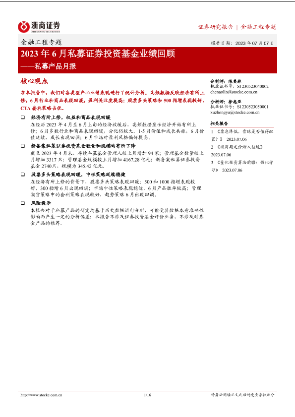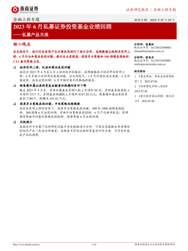 【浙商证券】【20230707】2023年6月私募证券投资基金业绩回顾-16页