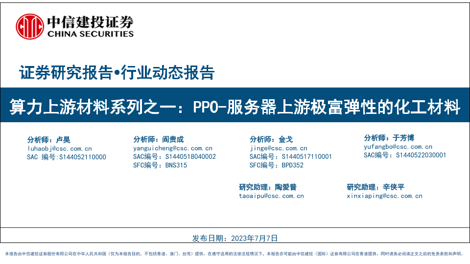 【中信建投证券】【20230707】算力上游材料行业系列之一:PPO_服务器上游极富弹性的化工材料-29页