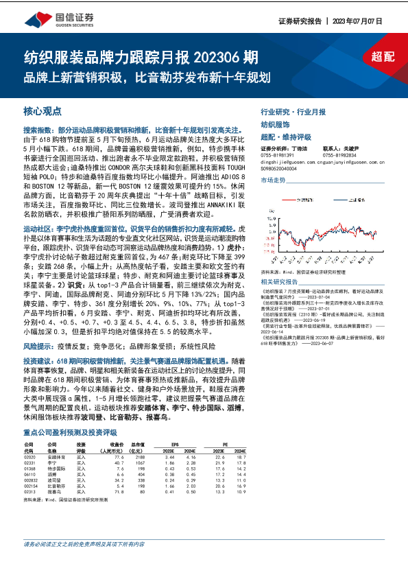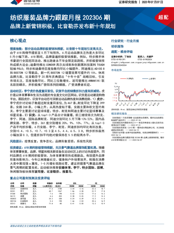【国信证券】【20230707】纺织服装行业品牌力跟踪月报202306期:品牌上新营销积极,比音勒芬发布新十年规划-18页