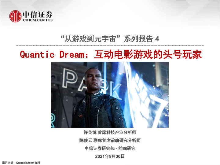 【中信证券】【20210930】科技行业“从游戏到元宇宙”系列报告4:Quantic Dream,互动电影游戏的头号玩家-26页