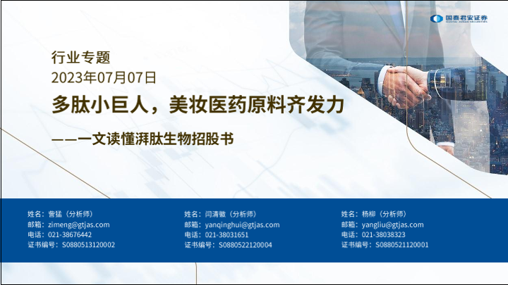 【国泰君安证券】【20230707】美妆医药行业一文看懂湃肽生物招股:多肽小巨人,美妆医药原料齐发力-28页