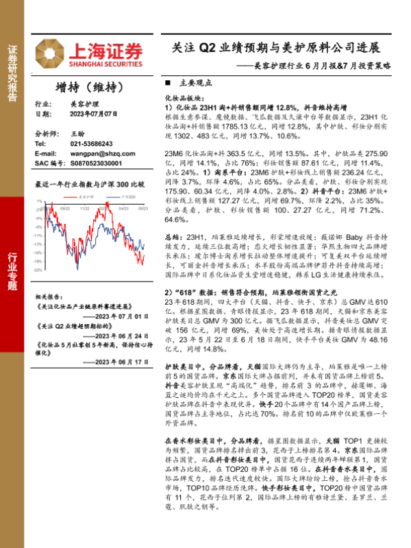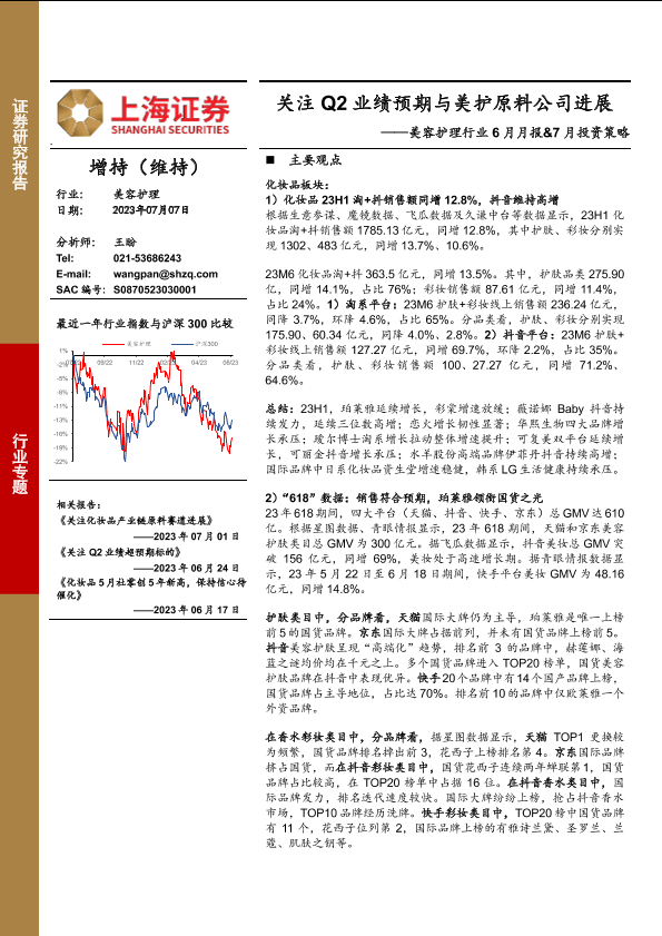 【上海证券】【20230707】美容护理行业6月月报&7月投资策略:关注Q2业绩预期与美护原料公司进展-45页