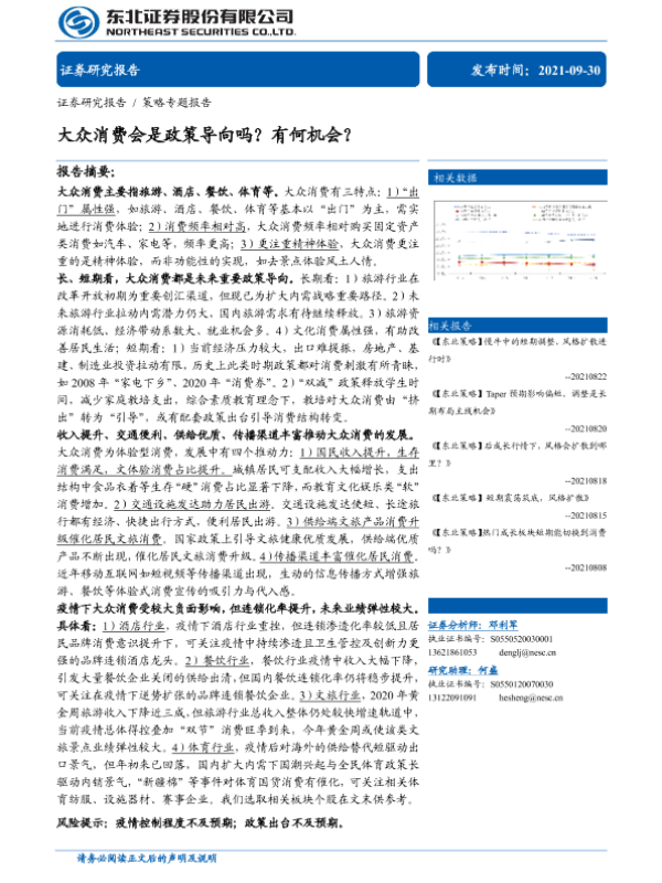 【东北证券】【20210930】策略专题报告:大众消费会是政策导向吗?有何机会?-20页
