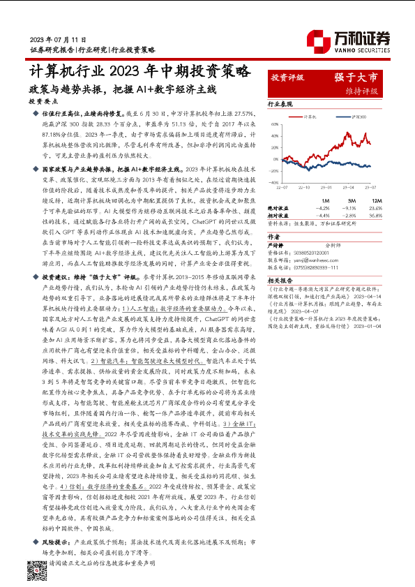 【万和证券】【20230711】计算机行业2023年中期投资策略:政策与趋势共振,把握AI+数字经济主线-19页