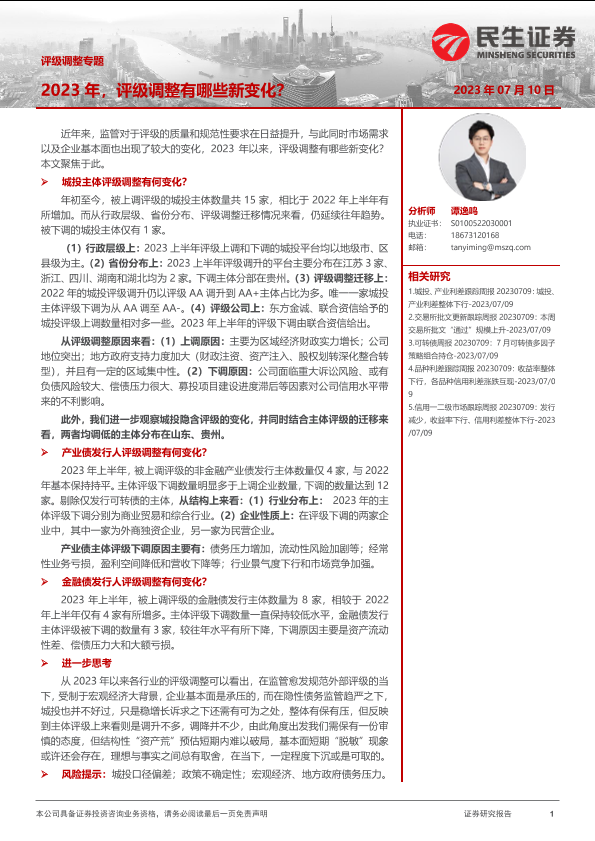 【民生证券】【20230710】评级调整专题:2023年,评级调整有哪些新变化?-21页