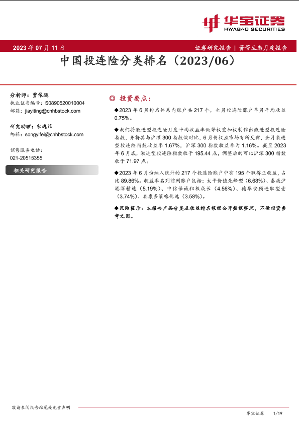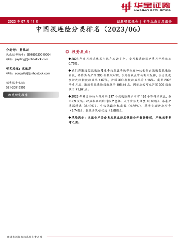 【华宝证券】【20230711】资管生态月度报告:中国投连险分类排名(202306)-19页