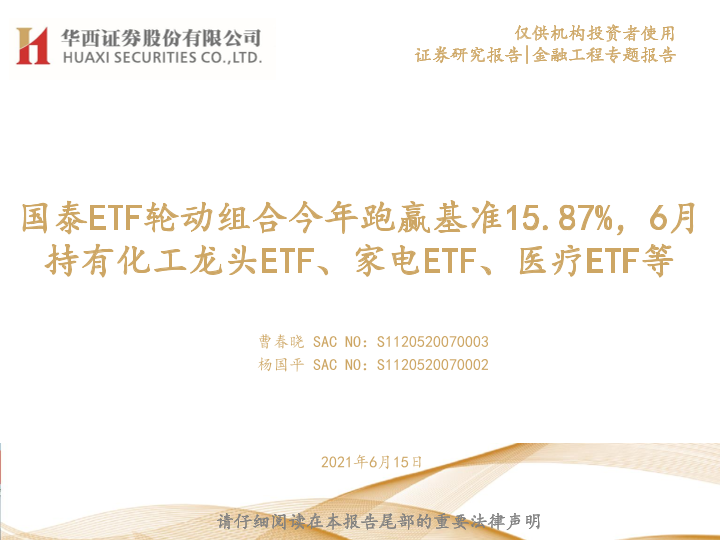 【华西证券】【20210615】国泰ETF轮动组合今年跑赢基准15.87%,6月持有化工龙头ETF、家电ETF、医疗ETF等-25页