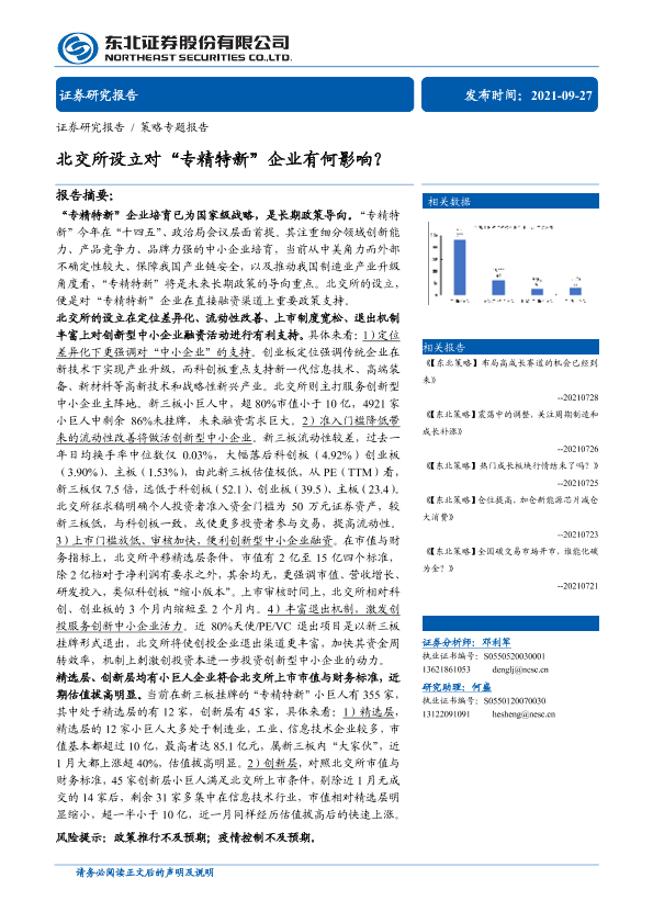 【东北证券】【20210927】策略专题报告:北交所设立对“专精特新”企业有何影响?-15页