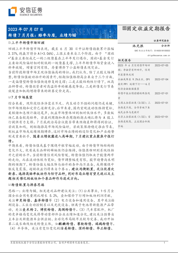 【安信证券】【20230707】转债7月月报:赔率为盾,业绩为锚-16页