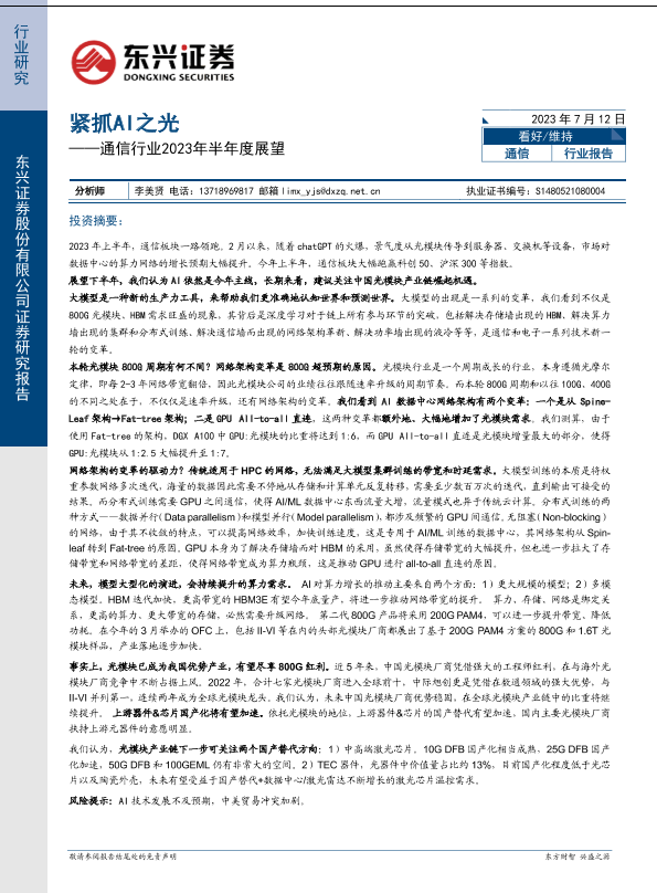 【东兴证券】【20230712】通信行业2023年半年度展望:紧抓AI之光-21页