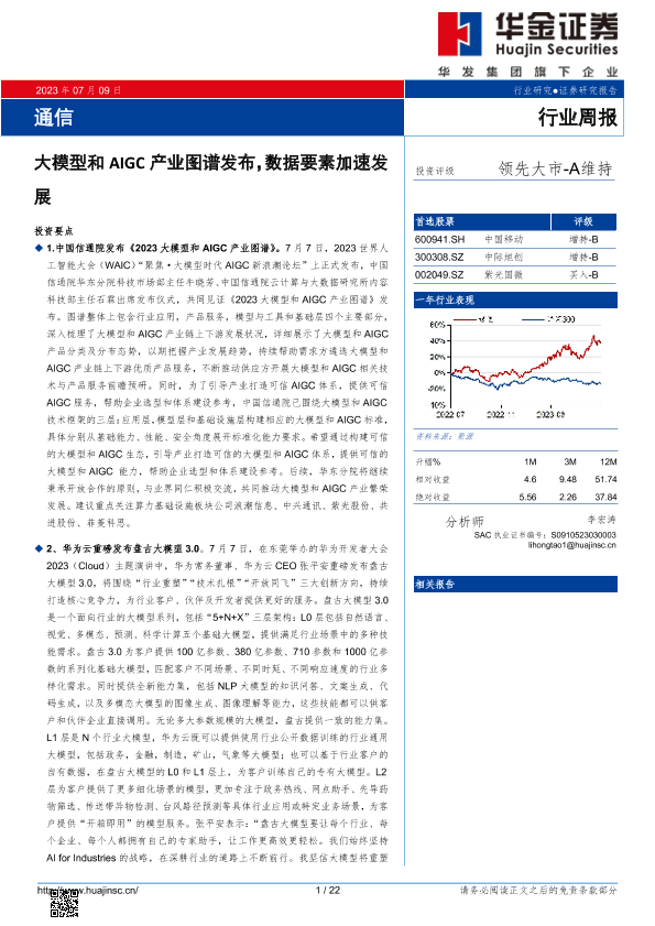【华金证券】【20230709】通信行业周报:大模型和AIGC产业图谱发布,数据要素加速发展-22页
