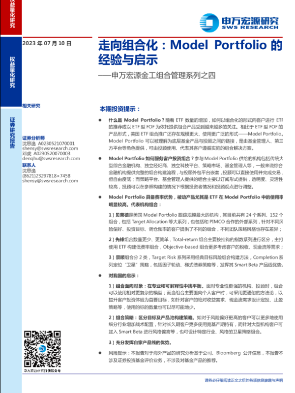 【申万宏源】【20230710】金工组合管理系列之四:走向组合化,Model Portfolio的经验与启示-21页