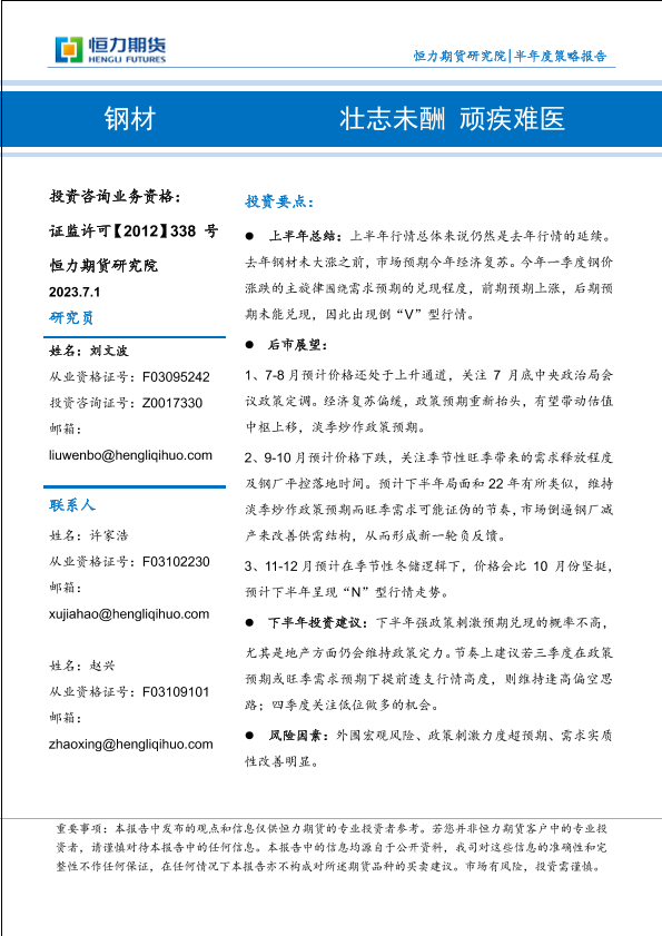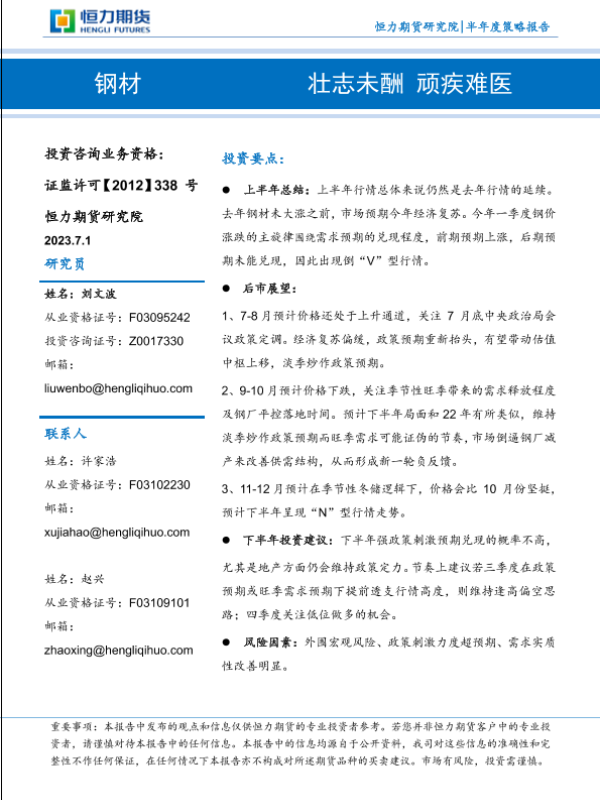【恒力期货】【20230701】钢材半年度策略报告:壮志未酬,顽疾难医-19页
