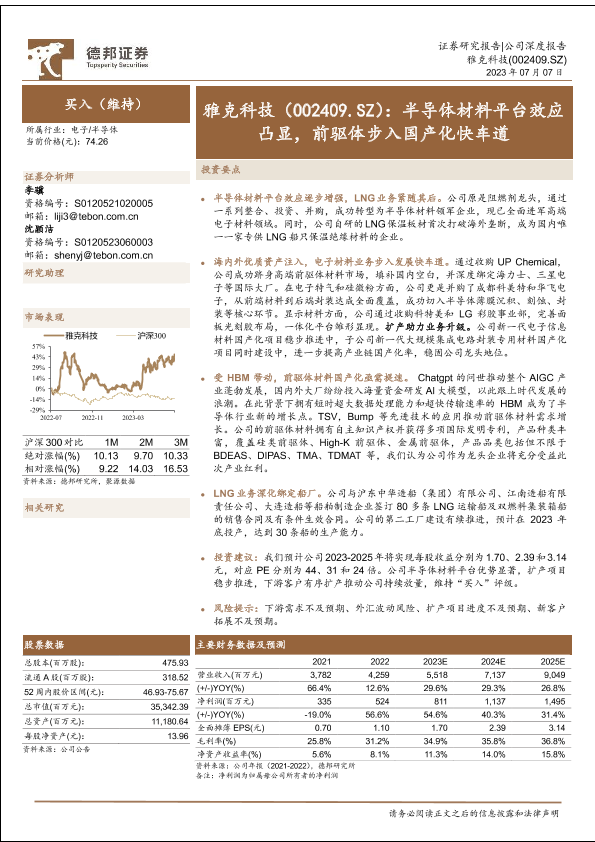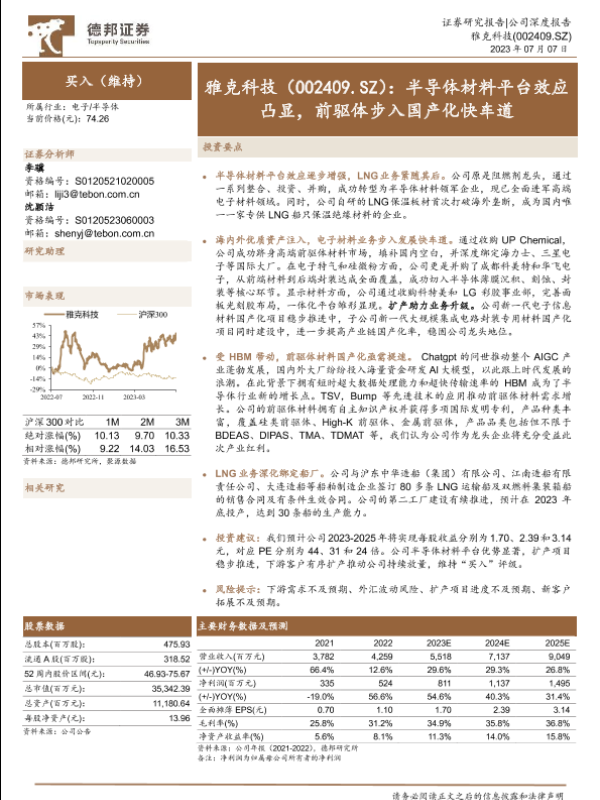 【德邦证券】【20230707】雅克科技(002409)半导体材料平台效应凸显,前驱体步入国产化快车道-24页