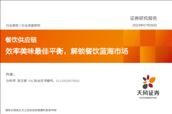 【天风证券】【20230709】餐饮行业:餐饮供应链,效率美味最佳平衡,解锁餐饮蓝海市场-24页