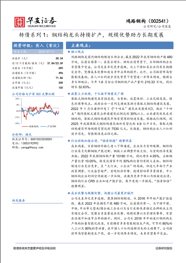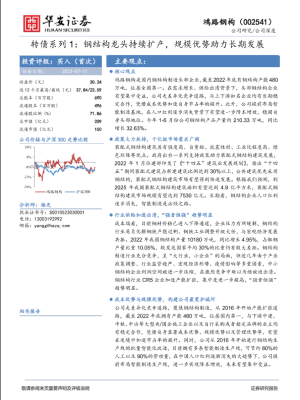 【华安证券】【20230711】鸿路钢构002541.SZ转债系列1:钢结构龙头持续扩产,规模优势助力长期发展-30页