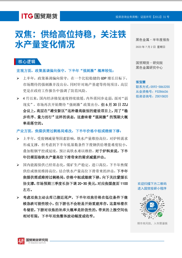 【国贸期货】【20230702】黑色金属·半年度报告:双焦,供给高位持稳,关注铁水产量变化情况-19页