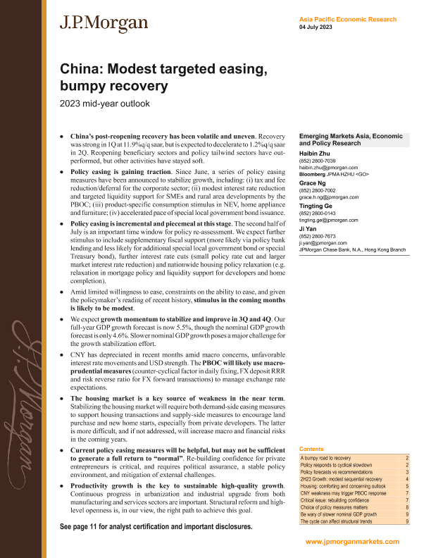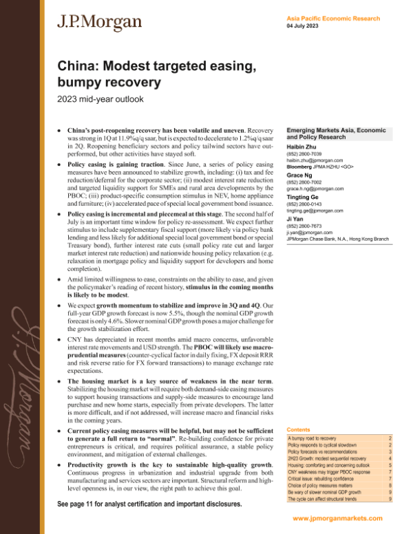 【J.P. Morgan】【20230704】FI-China Modest targeted easing, bumpy recovery 2023 mid-year outlook-15页