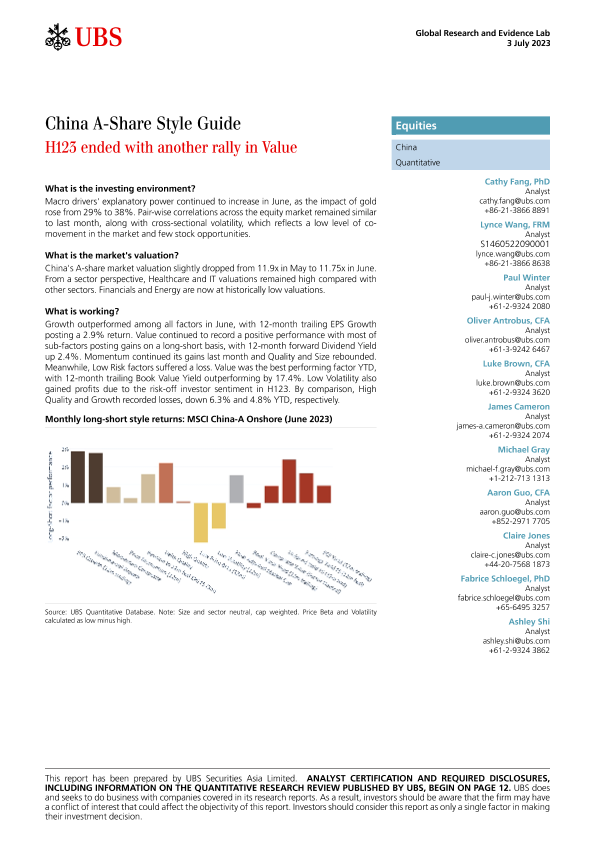 【UBS Securities Asia Limited】【20230703】China A-Share Style Guide-16页