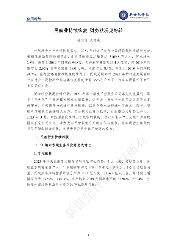 【新世纪评级】【2023】民航业持续恢复 财务状况见好转-9页