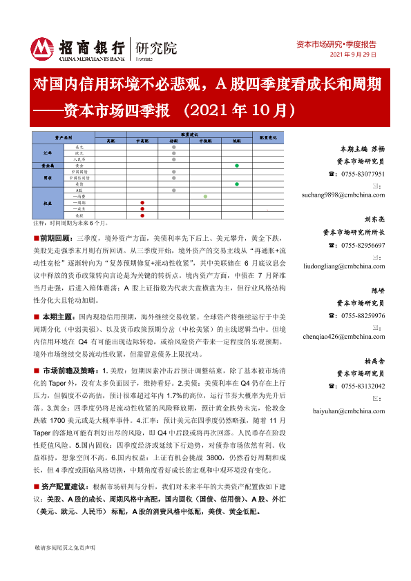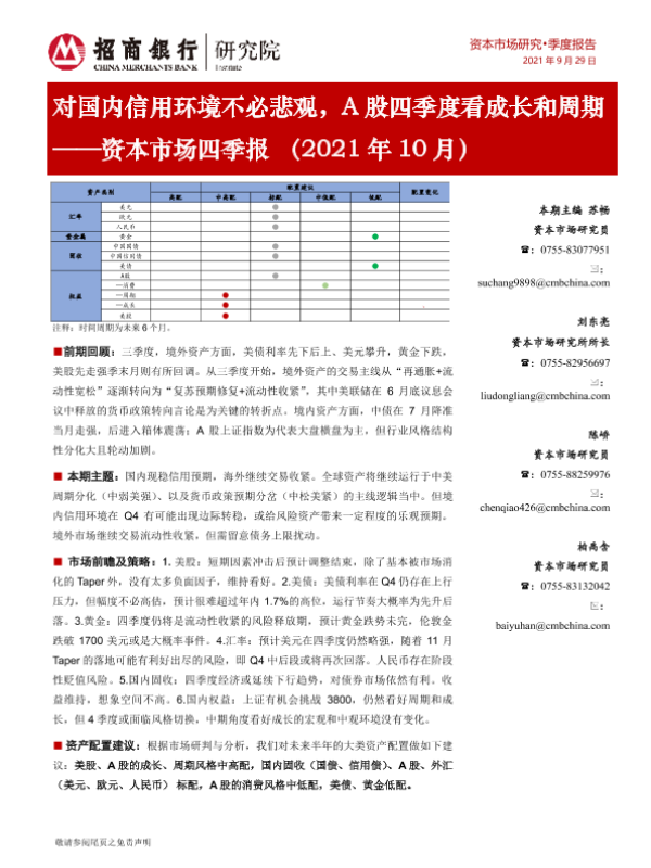 【招商银行】【20210929】对国内信用环境不必悲观,A股四季度看成长和周期 ——资本市场四季报(2021年10月)-28页