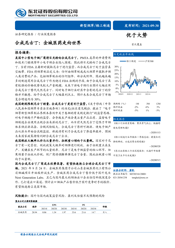 【东北证券】【20210930】轻工制造行业深度报告:合成尼古丁,金城医药走向世界-31页