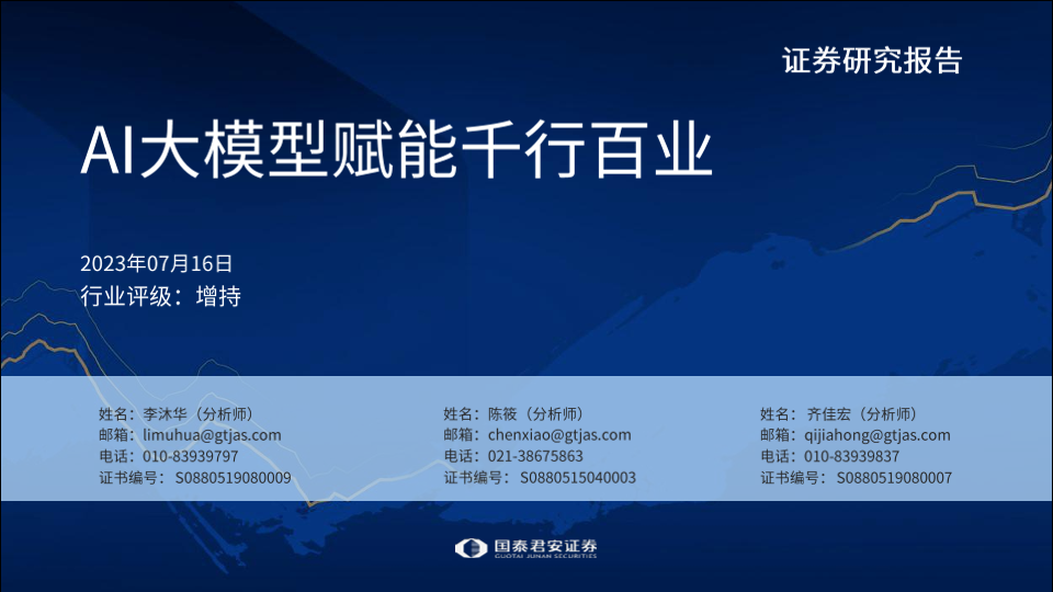 【国泰君安证券】【20230716】人工智能行业:AI大模型赋能千行百业-116页