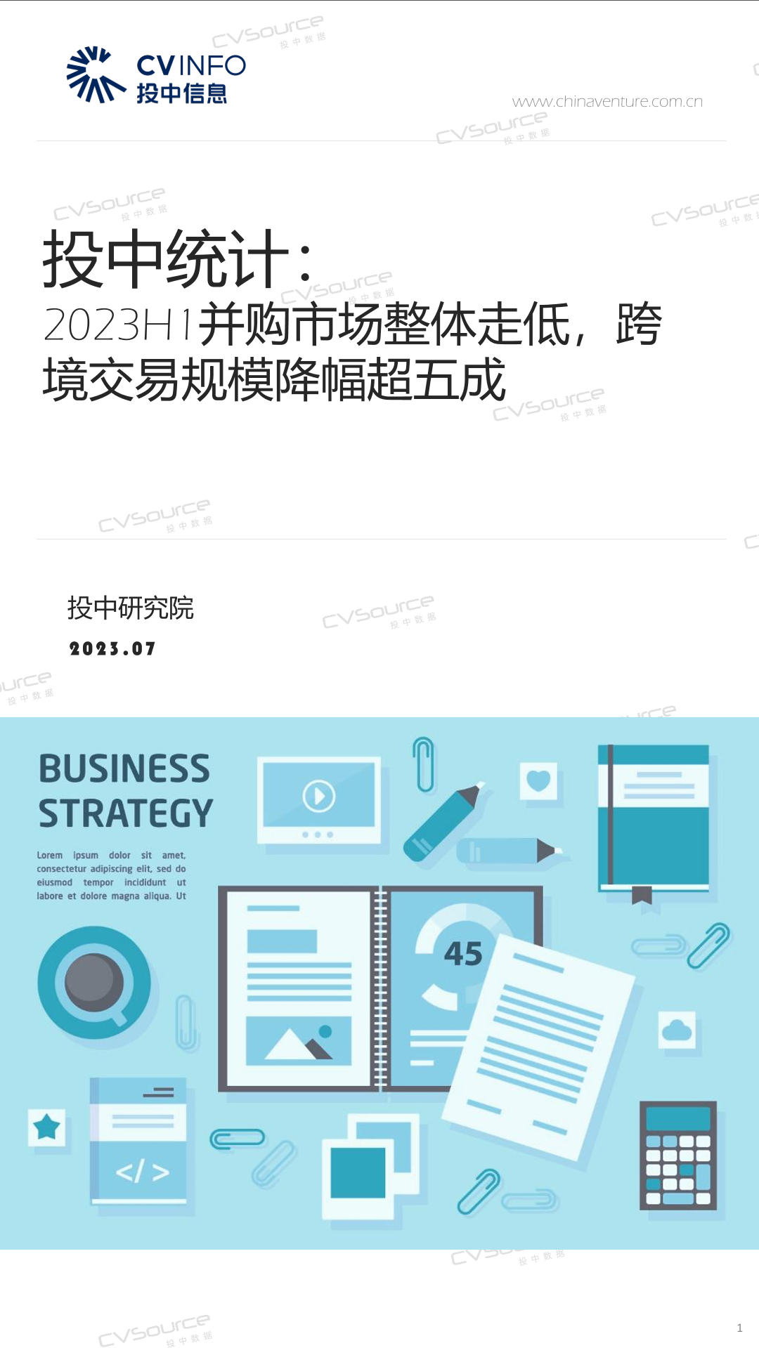【投中研究院】【202307】投中统计:2023H1并购市场整体走低,跨境交易规模降幅超五成-21页