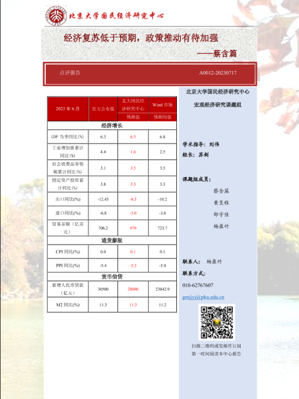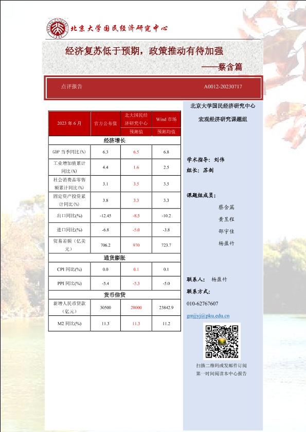 【北京大学国民经济研究中心】【20230717】经济复苏低于预期,政策推动有待加强-25页