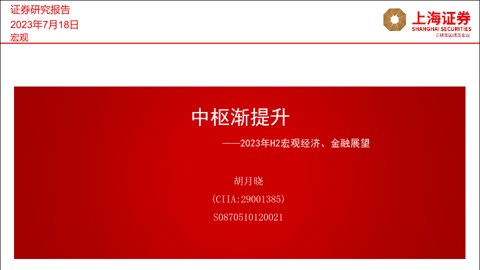 【上海证券】【20230718】2023年H2宏观经济、金融展望:中枢渐提升-43页
