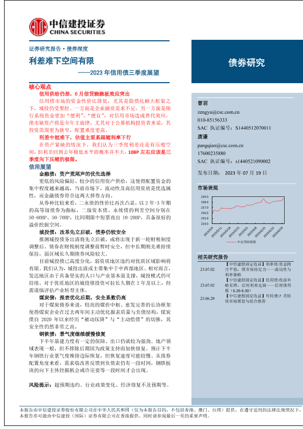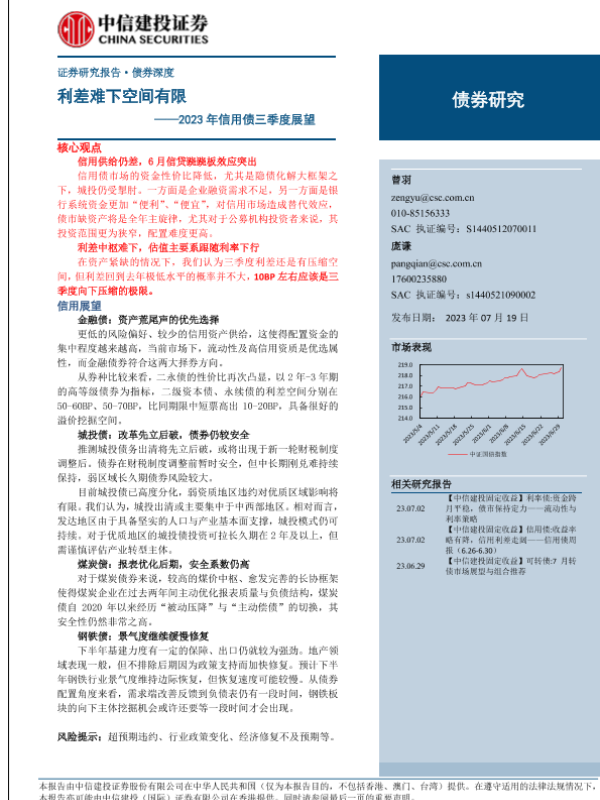 【中信建投证券】【20230719】2023年信用债三季度展望:利差难下空间有限-15页