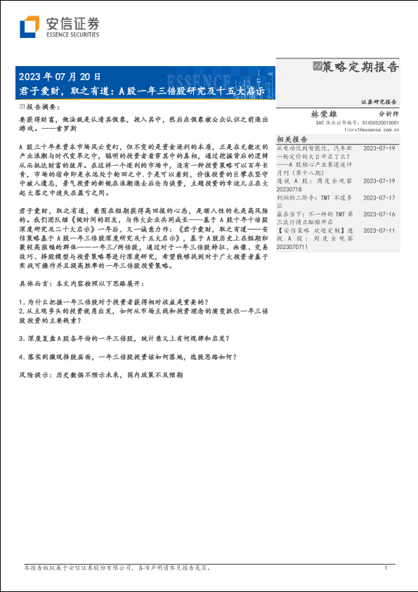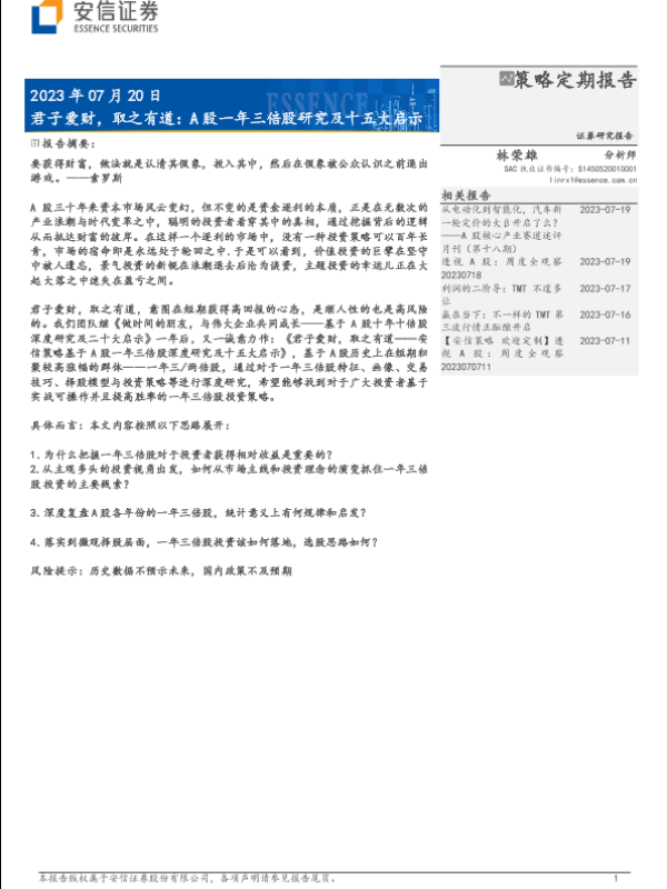 【安信证券】【20230720】A股一年三倍股研究及十五大启示:君子爱财,取之有道-52页