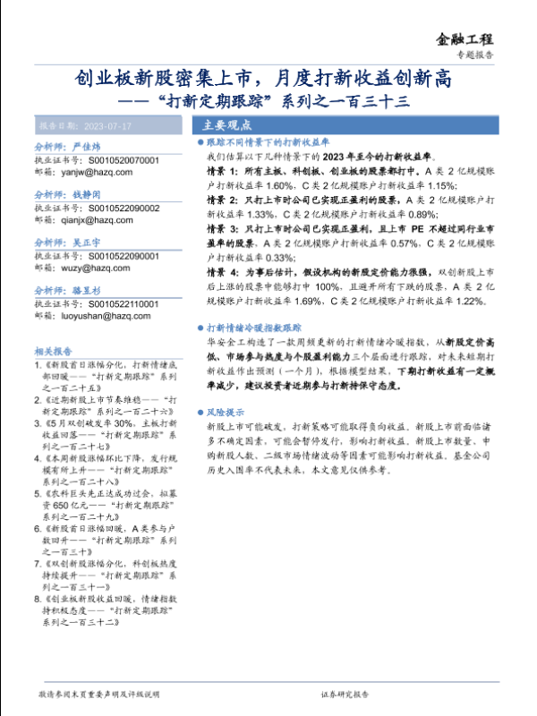 【华安证券】【20230717】“打新定期跟踪”系列之一百三十三:创业板新股密集上市,月度打新收益创新高-22页
