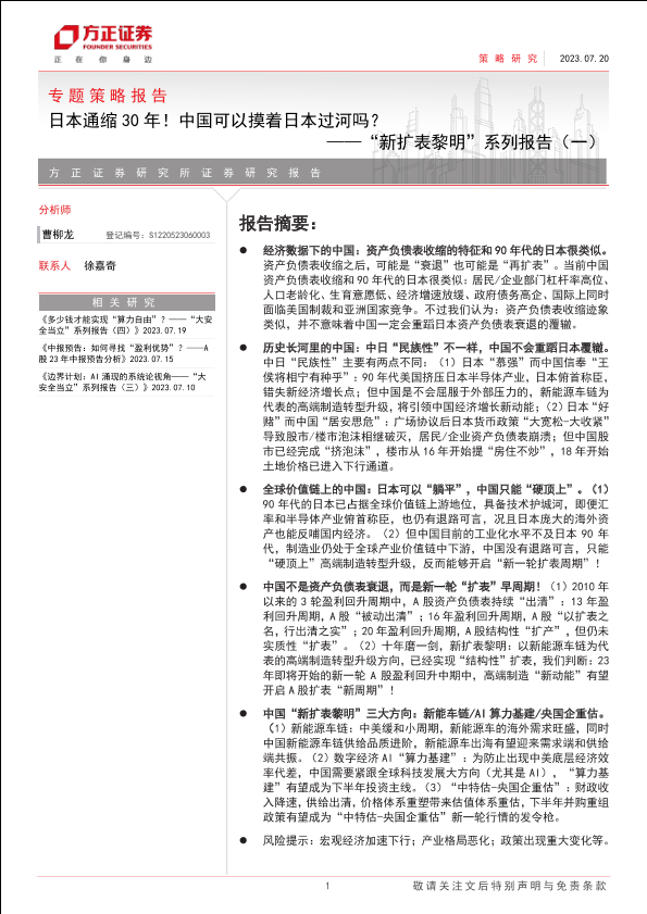 【方正证券】【20230720】“新扩表黎明”系列报告(一):日本通缩30年!中国可以摸着日本过河吗?-25页