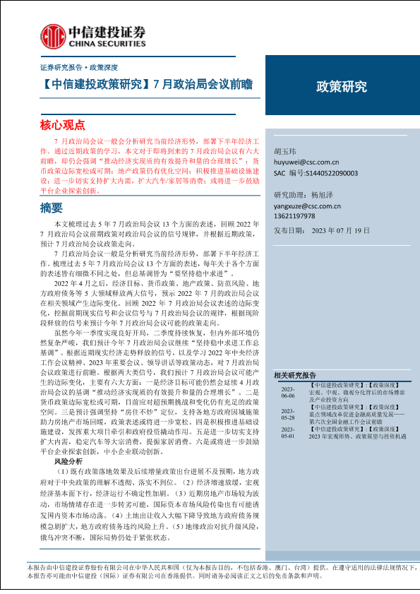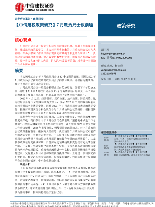 【中信建投证券】【20230719】7月政治局会议前瞻-16页