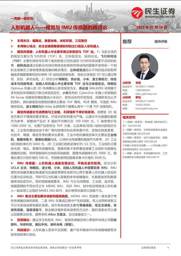 【民生证券】【20230716】一周解一惑系列:人形机器人——视觉与IMU传感器的再讨论-35页