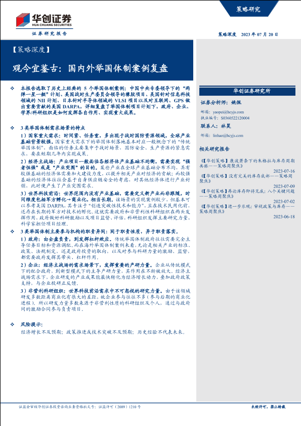 【华创证券】【20230720】观今宜鉴古:国内外举国体制案例复盘-26页